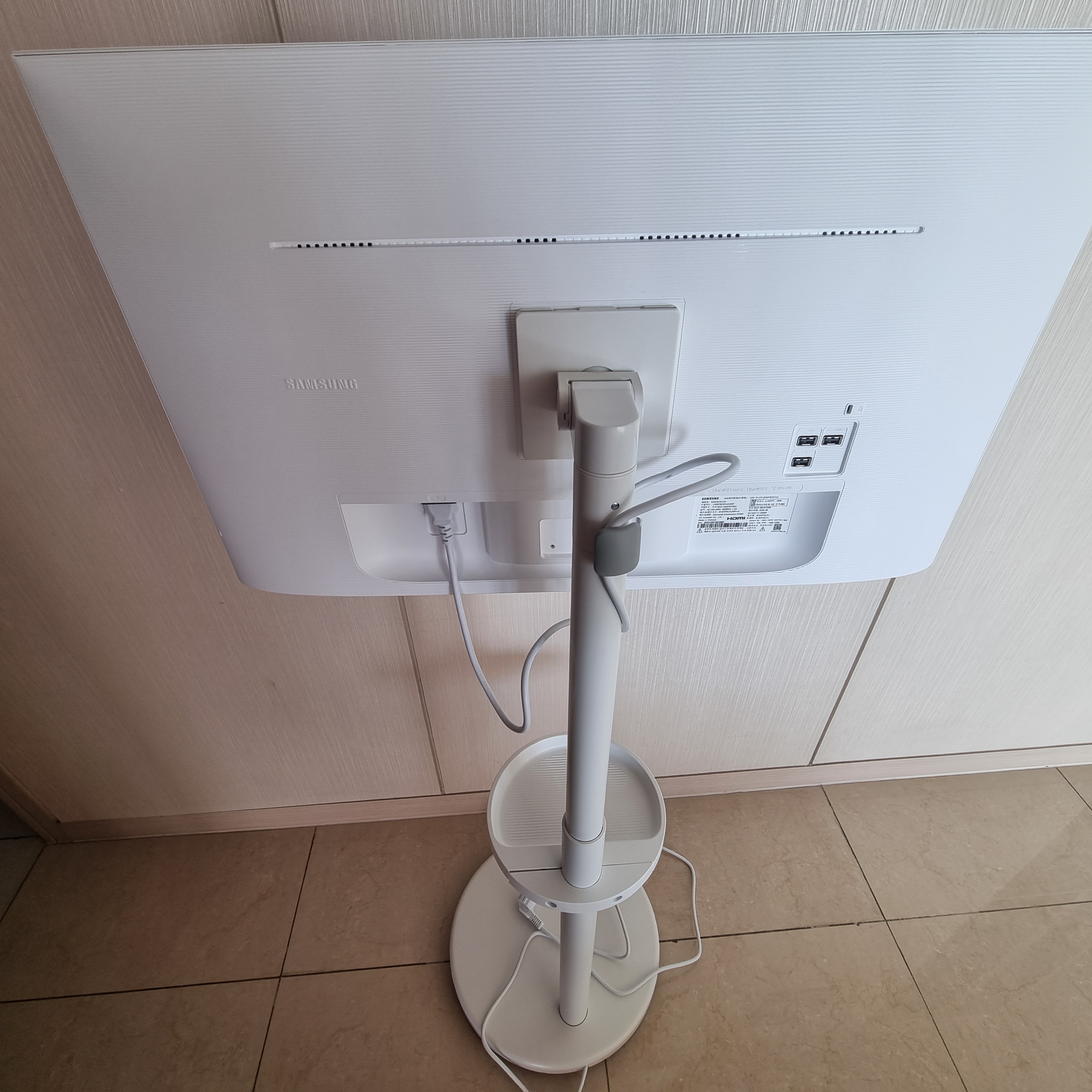 4K UHD 32인치 삼성 스마트 M7 모니터라 화질도 좋고 옮겨다니며 보기에는 43인치보다는 32인치가 더 나은 것 같아요.